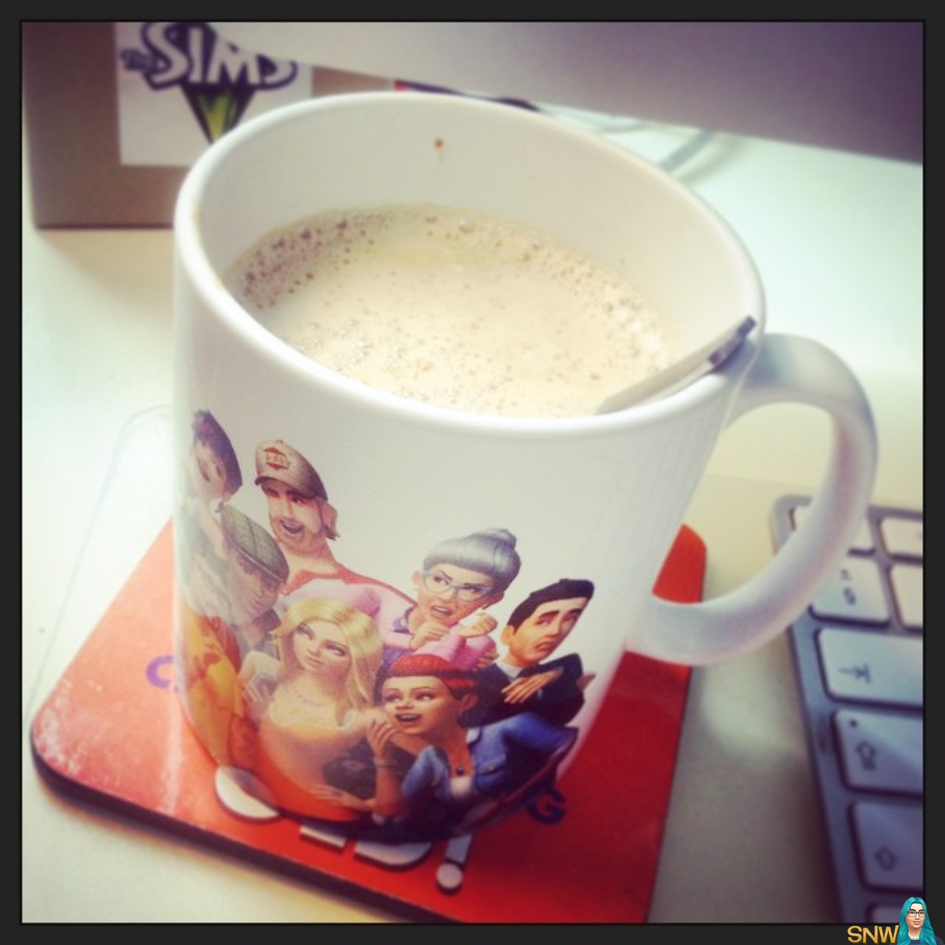 Drinking my fave cafe caramel from this awesim new #TheSims4 mug. Gotta have my latte while I'm writing the #TheSims4 Get to Work preview! thanks EA Benelux!
