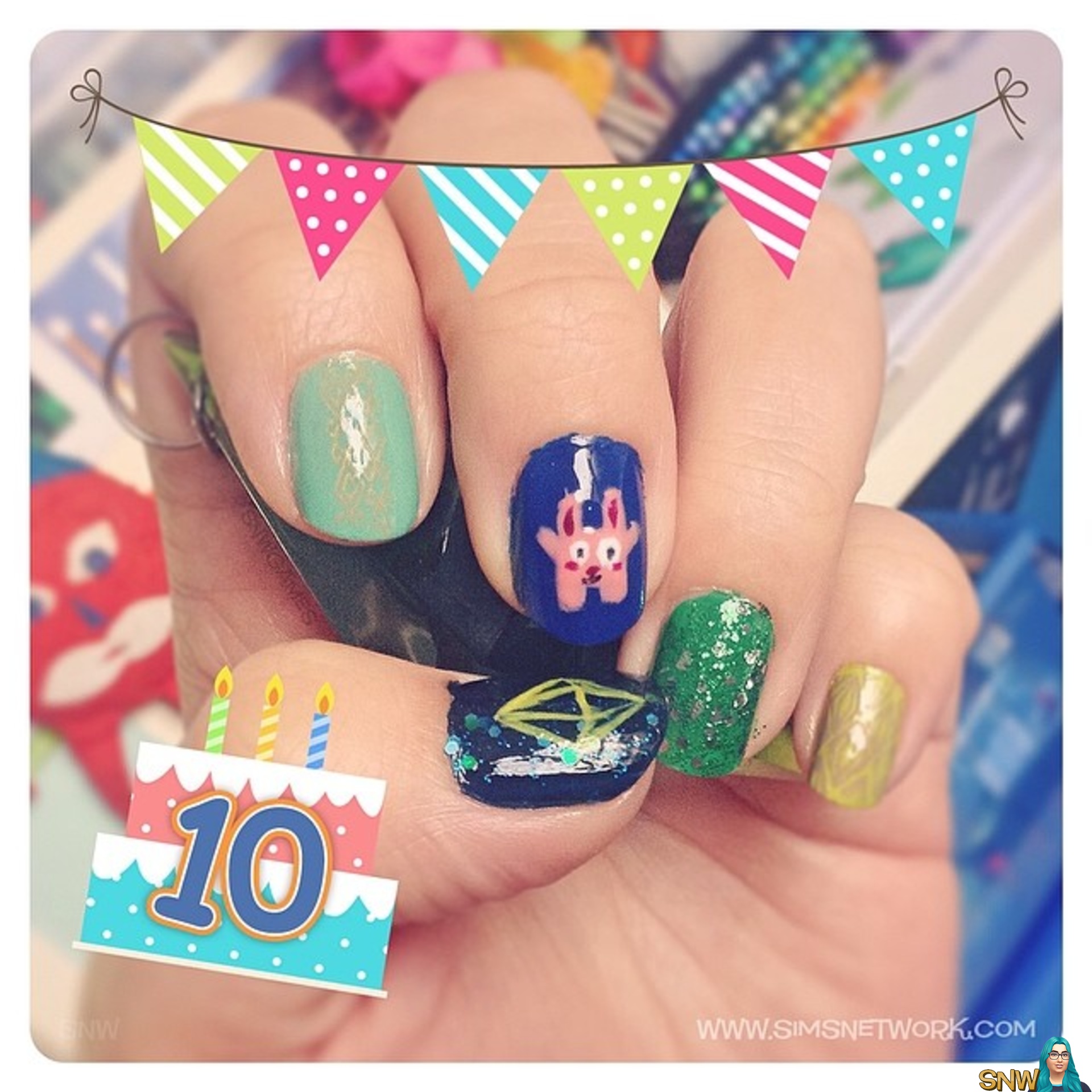 SimsNetwork is 10 years old today! To celebrate that, I've decided to do my nails, sims style haha! ^^