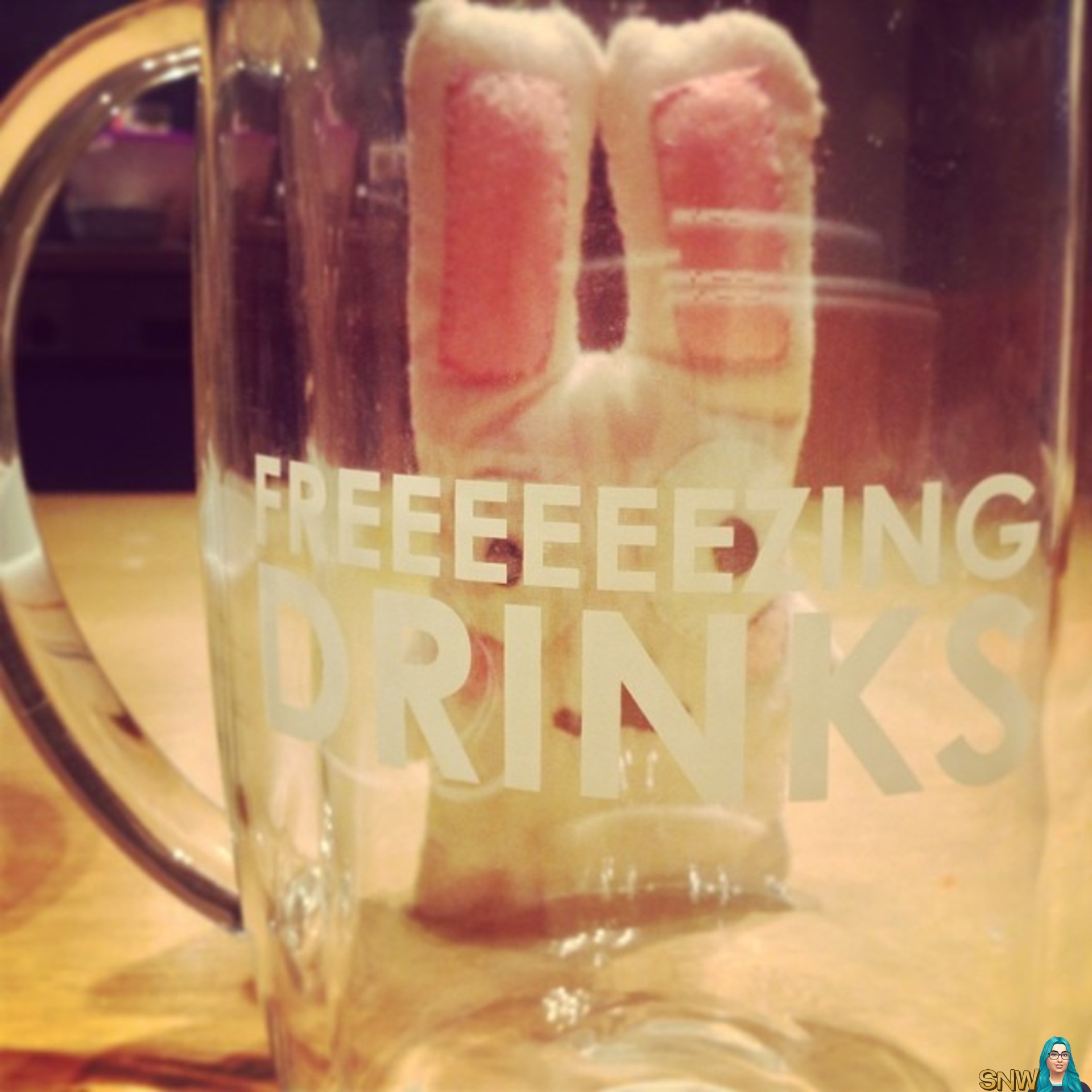 Freezer Bunny spotted this FREEEEEEZING DRINKS carafe in the kitchen, and decided to hide behind it! #merrysimsmas
