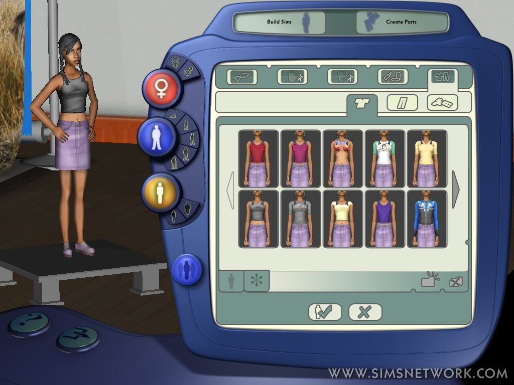 Exciting news this week on the player created content front. As you know, the production team is working diligently on the stand alone create a sim tool. Below are a couple of images that begin to illustrate the type of customization that will be available for your Sims in The Sims 2. Although we have received a few suggestions, we are still looking for a more exciting name than SACAS. Have any brilliant ideas? Make your personal contribution to The Sims 2 by emailing us your name suggestions.